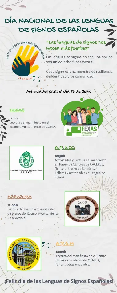 Celebraremos el Día Nacional de las Lenguas de Signos Españolas en diferentes puntos de nuestra región 🤗.
